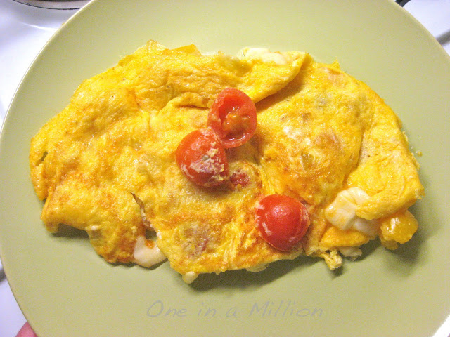 Lavate e tagliate a metà i pomodorini, tagliate la mozzarella a cubetti e, in un piatto, sbattete con una forchetta le uova con sale e pepe.