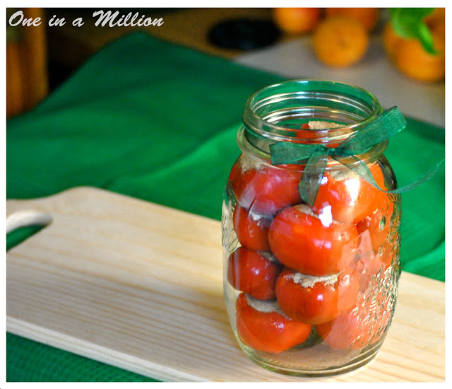 Eccoci allora con la tipica preparazione di fine agosto, ossia i peperoncini ripieni, per i quali ho provato una ricetta alternativa rispetto a QUESTA, con doppia sterilizzazione e senza cottura, che mi piace maggiormente perché quei piccoli tondini rossi restano belli sodi, oltre al fatto che mi sento più sicura (anche se l’olio così s’intorbidisce un poco: un peccato per gli occhi, ma il gusto non ne risente).