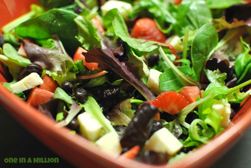 Insalata di misticanza con fragole, Montasio e fagioli neri