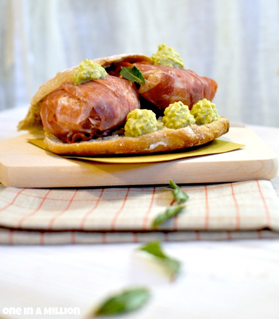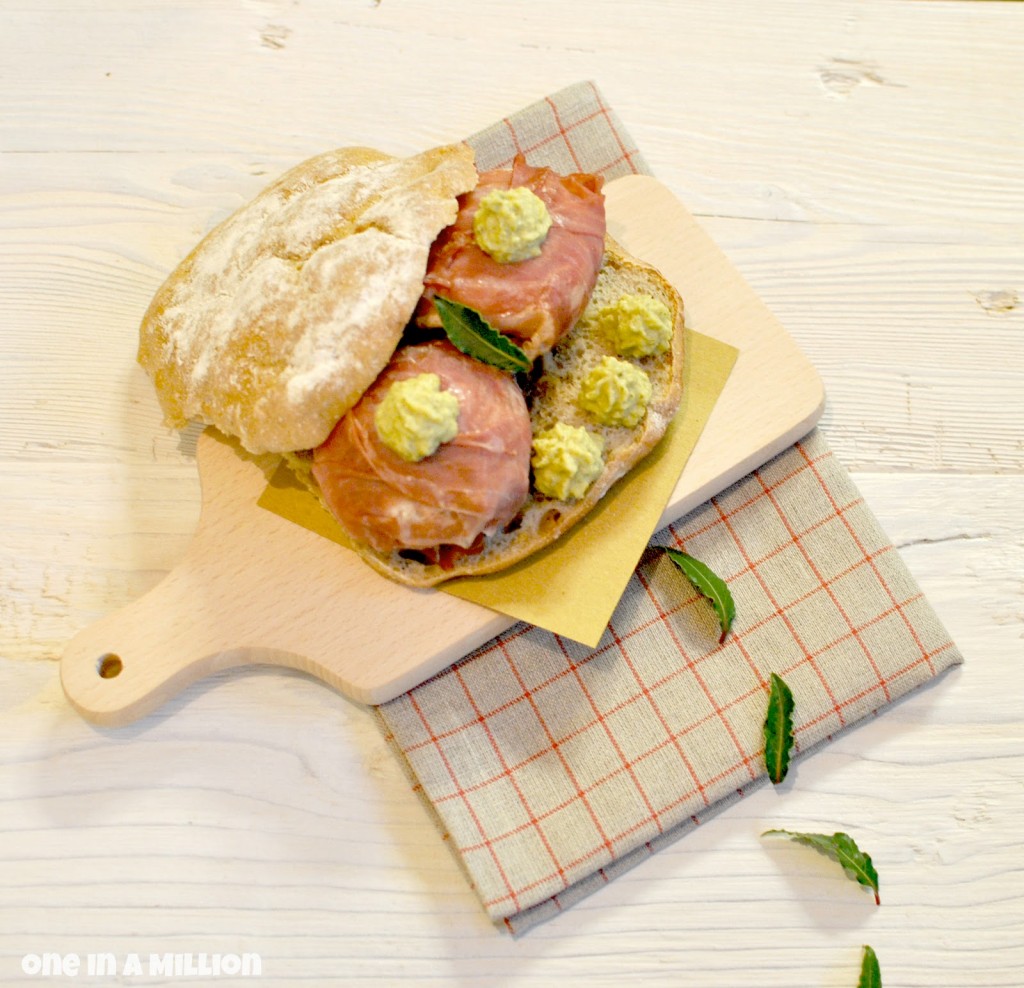 Ho voluto quindi rivisitare questo panino ricco di tradizione, facendo io stessa la puccia ed utilizzando un prodotto d’eccellenza italiano, il Prosciutto di Parma, perfetto abbinato ad un altro prodotto che si trova spesso qui nelle mie terre, il Tomino del boscaiolo (formaggio vaccino a pasta molle con una crosta stagionata, dolce e piccante che viene spesso avvolto nello speck e cotto al forno), il tutto ammorbidito da una crema al cetriolo e cren.