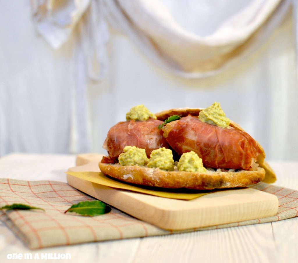 PUCCIA TRADIZIONAE RIVISITATA CON CRUDO DI PARMA, TOMINO E CREMA AI CETRIOLINI