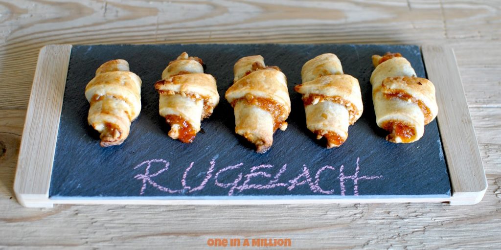L’idea di questi dolcetti nasce dal libro Una merenda a New York, che ha un sacco di spunti per dolci, torte e biscotti, tra le quali i Rugelach (tradotto letteralmente significa ‘torcetti’) al cioccolato, un tipico dolce delle feste ebraiche che ormai si trova tutto l’anno in giro per la Grande Mela.