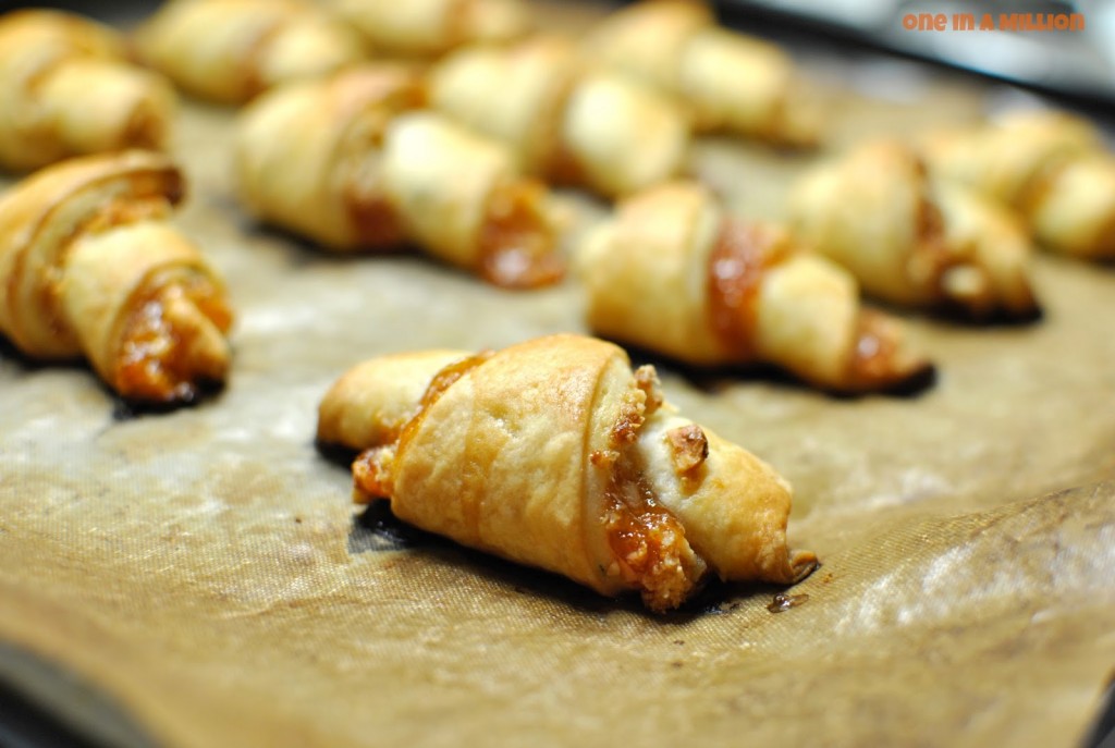 Arrotolate partendo dal lato largo come per i croissant, ma senza stringere troppo ne incurvando i bordi. Lasciate la chiusura con la punta in alto e posizionateli su una teglia con carta da forno.