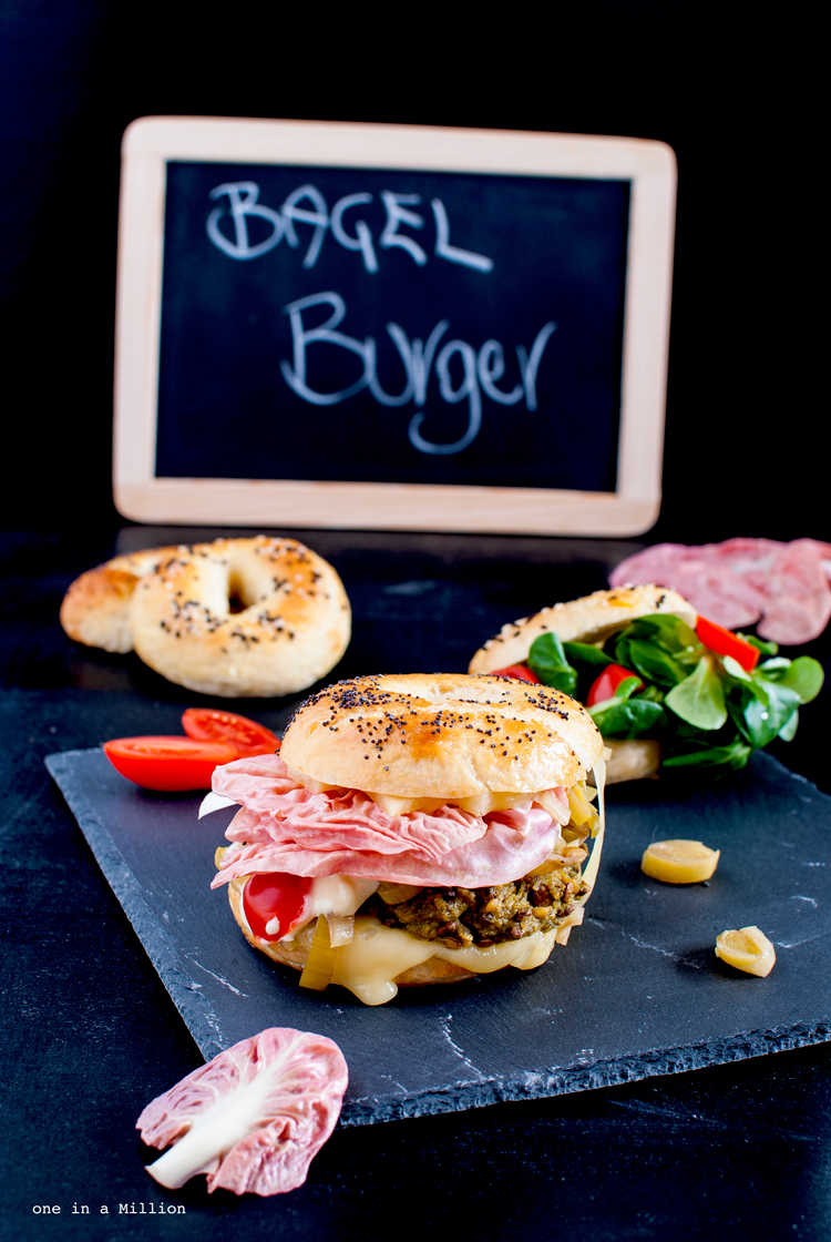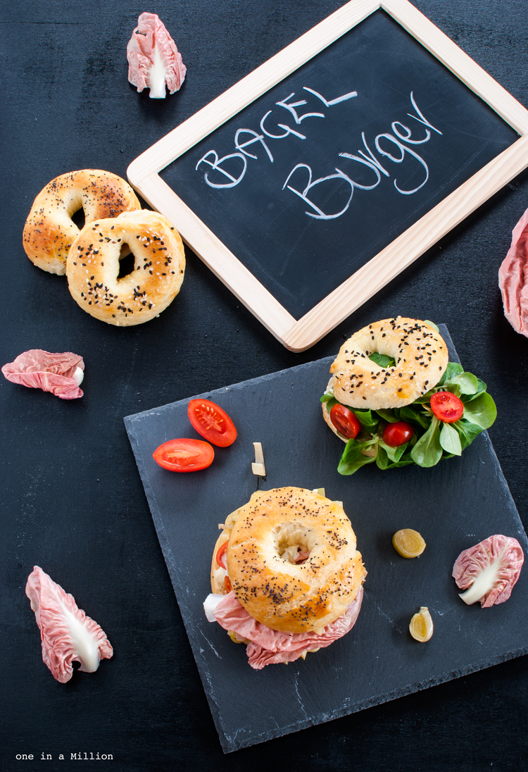 Non so se guardare con più ammirazione il bagel o il radicchio rosa… mai visto, ma ora come faccio a vivere senza? Ehehe! 😀 Io mi sto appassionando sempre di più a questi panini golosi e particolari, stimolano gusto e fantasia! Sarebbe bello che quella lavagnetta diventasse un vassoio per servirmene uno… 🙂
