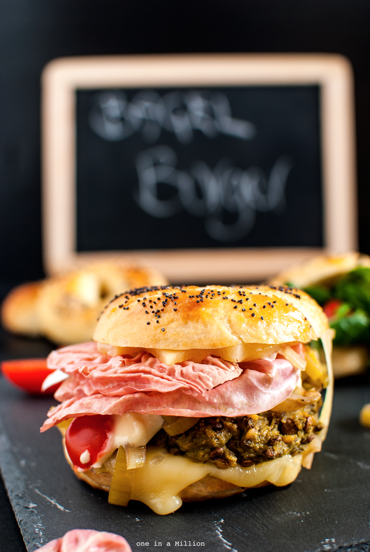 bagel bruger, cavolo, lenticchie, porri, radicchio rosa