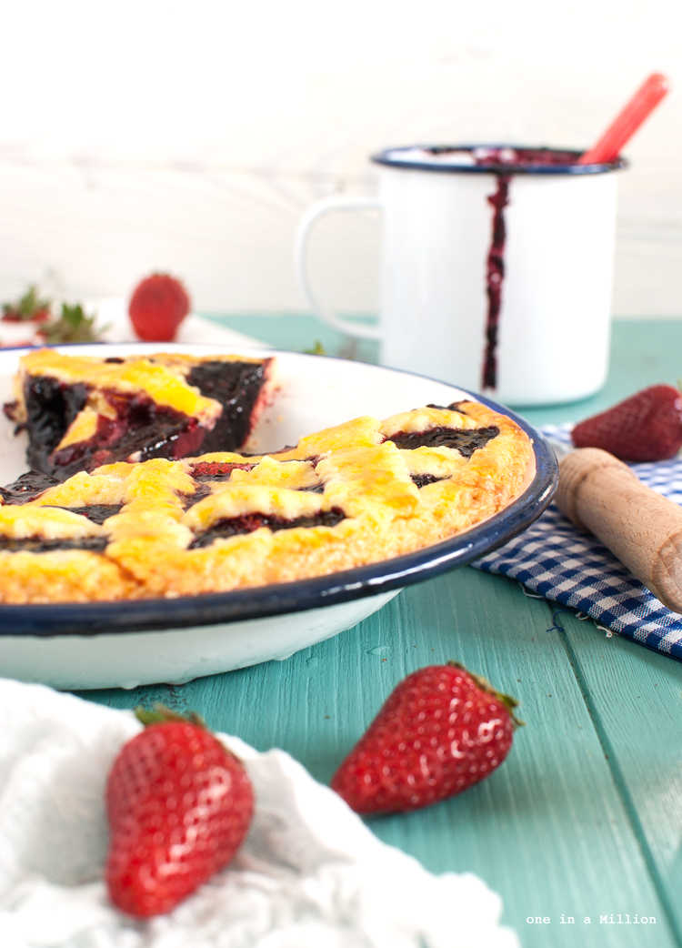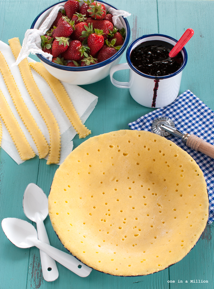 Oggi una ricetta semplice con qualche ingrediente in più: una classica frolla Milano arricchita dai semi di vaniglia, una confettura per liberare la dispensa in attesa delle prossime conserve e tante fragole di stagione.