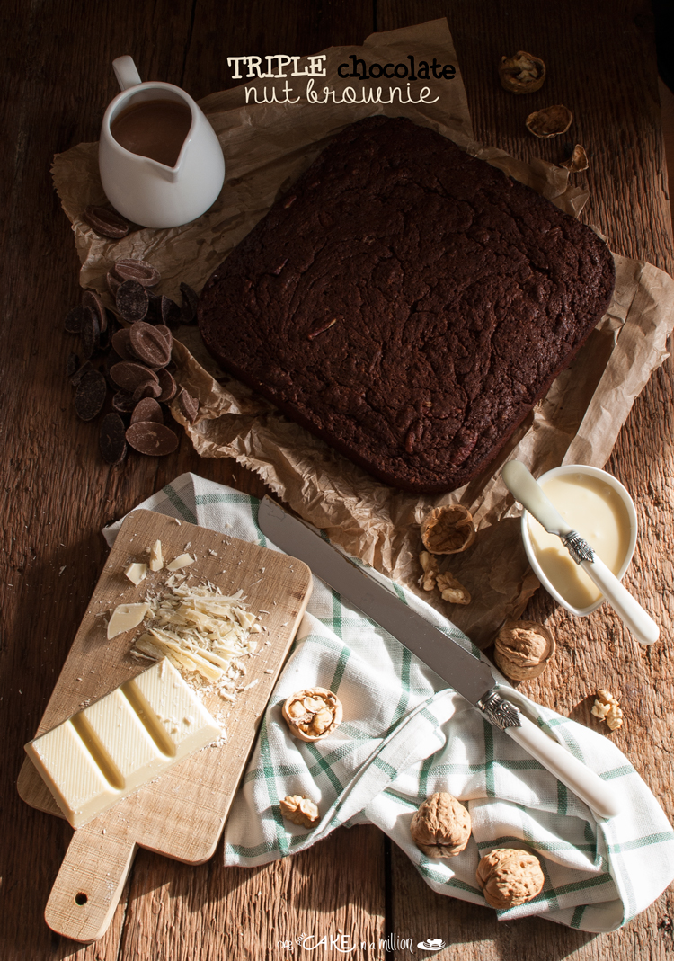 Non è leggera, non è light, non è da colazione e per qualche purista dovrebbe pure essere vietata, ma è davvero stupenda. Sono partita da una ricetta di Cioccolato, e per la prima volta una preparazione non mi è riuscita: il brownie era duro, croccante e non si prestava minimamente a questo accompagnamento, così –visto che ormai gli altri due strati cioccolatosi erano già pronti– ho preso la ricetta dei brownie di Miss Garanzia Donna Hay e ho potuto servirlo come si deve.