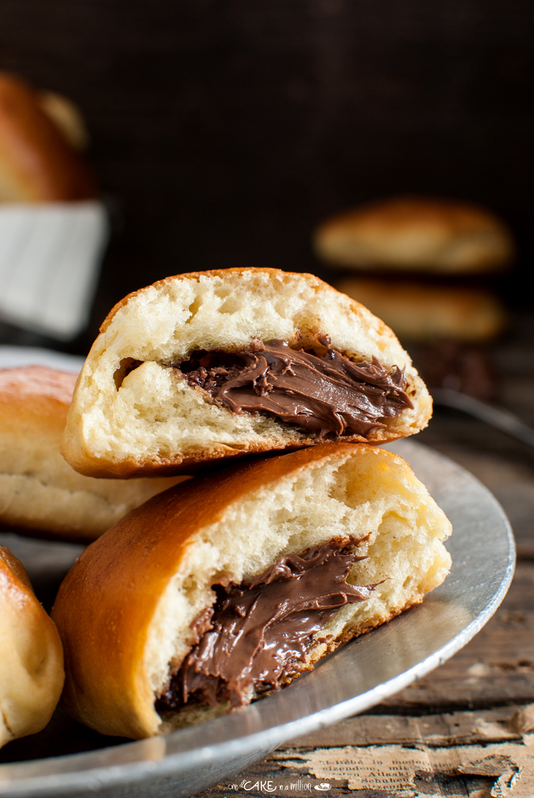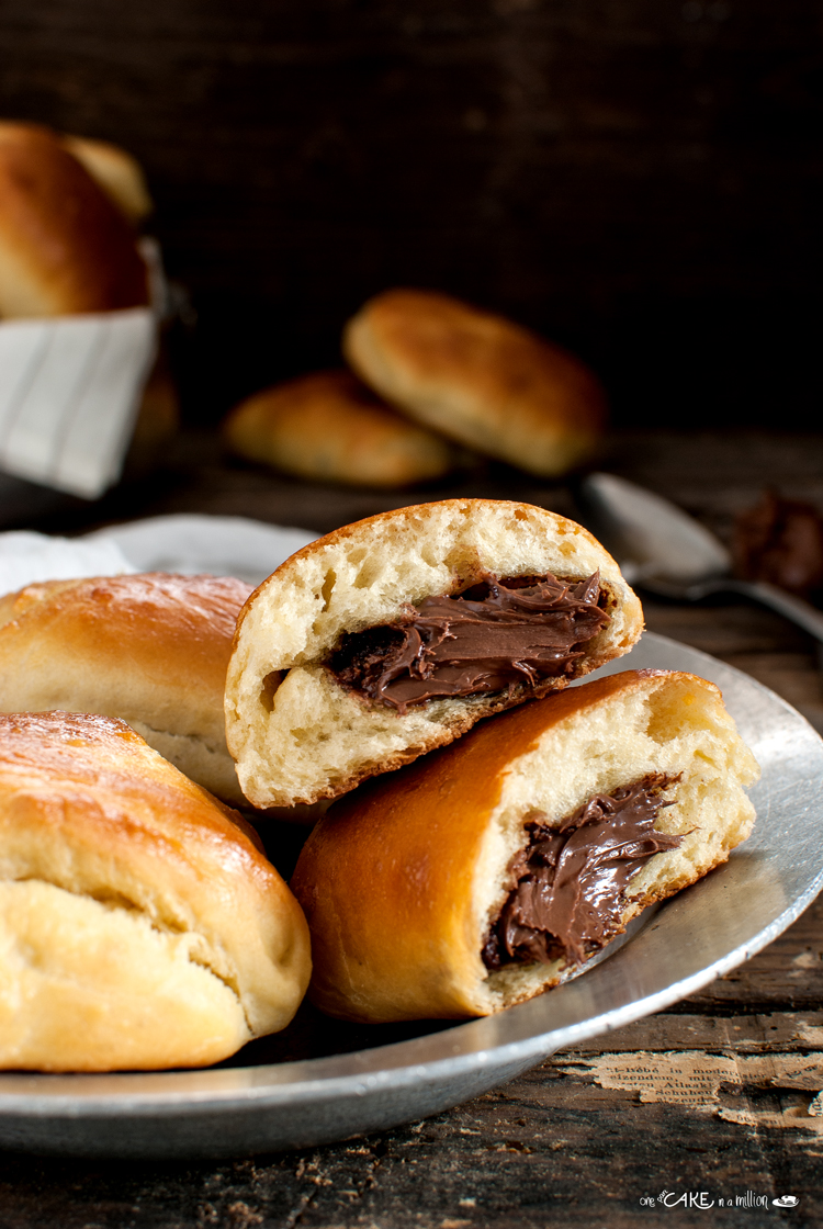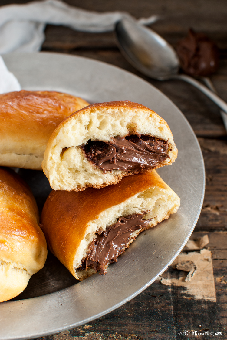 Ho ridotto le dosi di lievito e utilizzato una crema alle nocciole per il ripieno, ma se le trovate usate le barrette di cioccolato apposite che non subiranno alterazioni in cottura.